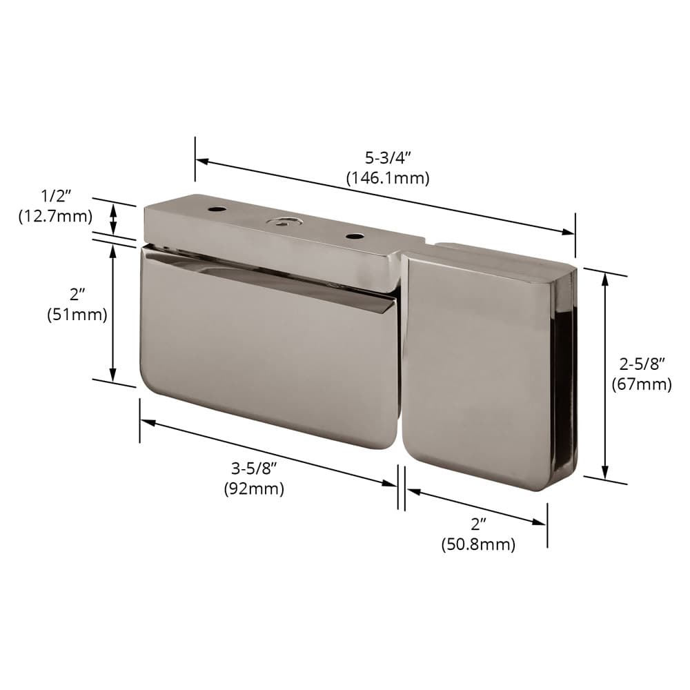 Our SATURN 180 Degree Beveled Top Bottom Pivot Hinge with U-Clamp. This hinge is the perfect choice for securely affixing shower doors to the floor, ceiling, or wall. With its top and bottom pivot installation and attached U-clamp, it offers exceptional flexibility and can be effortlessly installed with minimal drilling and hardware. Featuring a 180-degree swing that ensures easy access and a comfortable shower experience. The attached U-clamp provides additional stability and support, guaranteeing a secure connection. Choose from a variety of finish color options to coordinate with your bathroom decor and personalize your shower enclosure. Its Saturn design ensures a stable and secure connection, while the beveled edges allow for a smooth and seamless pivot motion. Crafted from solid brass and engineered with precision, this hinge delivers reliable performance, durability, and long-lasting, corrosion-free use. The transom mount installation of our SATURN 180 Degree Beveled Top Bottom Pivot Hinge with U-Clamp offers the added benefit of self-centering within 15 degrees of the closed position. Its easy-to-clean design ensures that your shower enclosure remains hygienic and visually appealing with minimal effort. Please note that a cutout is required during installation to ensure proper fit and functionality. Color Finish: Brushed Nickel